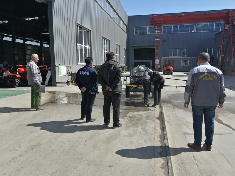 銷售經(jīng)理跟車間主任一說(shuō)明情況,就安排楊師傅,開(kāi)著小四輪掛接上打藥機(jī),來(lái)到廠區(qū)的組裝車間門口進(jìn)行實(shí)地演示。