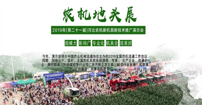 今天上午由中國農(nóng)業(yè)機械流通協(xié)會、北方農(nóng)業(yè)機械微信服務平臺共同舉辦的《2019年河北農(nóng)機新機具新技術推廣演示會》在河北省石家莊市正定縣南樓鄉(xiāng)召開!