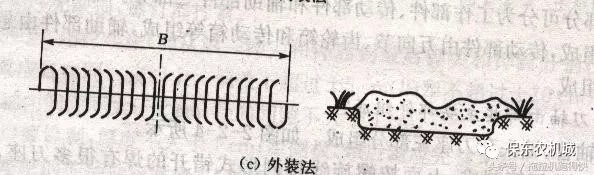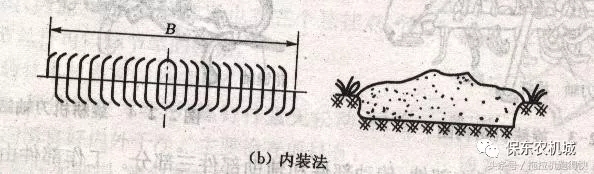 刀片都朝刀軸中間彎,該裝法耕后中間有壟,起填溝作用。