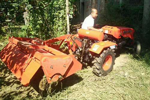 (4)機器鋤草輪的入土深度5CM,既可把草根徹底鋤掉,還能起到淺層松土的效果;另外進入夏季后, 果木土壤表層的根系發(fā)達而這個深度剛剛傷不到作物根。